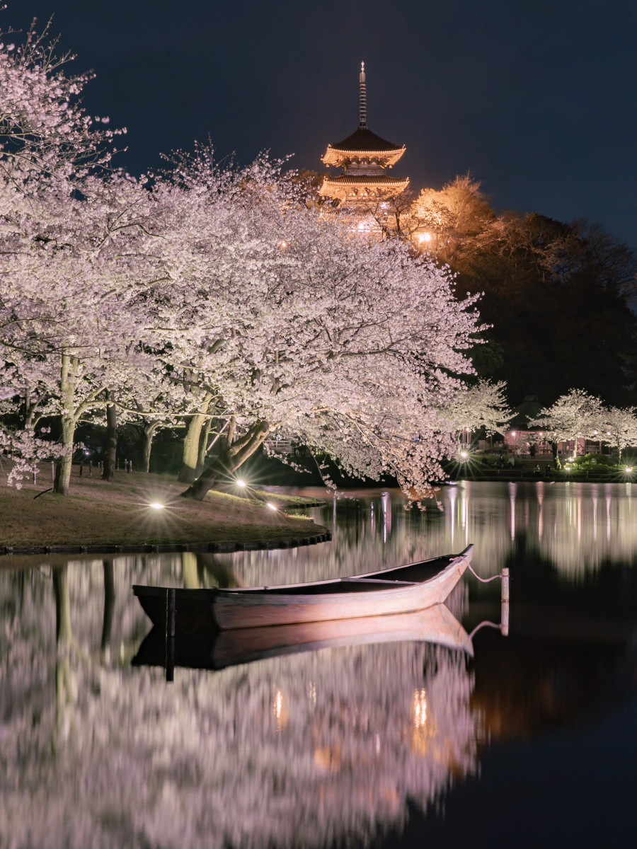 三溪園の夜桜と船の3点が見事美しい一枚!水面のたゆやかな反射と、船の静けさのコントラストにも惹かれました。横浜川崎エリアにこんな素敵な場所があったとは知りませんでした。この春にぜひ訪れてみたくなりました。かな花の自慢と言える見事な作品をありがとうございます。