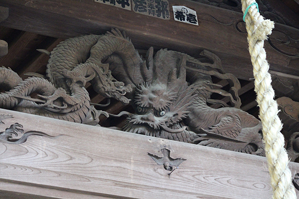 本殿向拝に龍の宮彫りあり。は、(安房の国(房総)の名工、後藤利兵衛(1815年)作。)