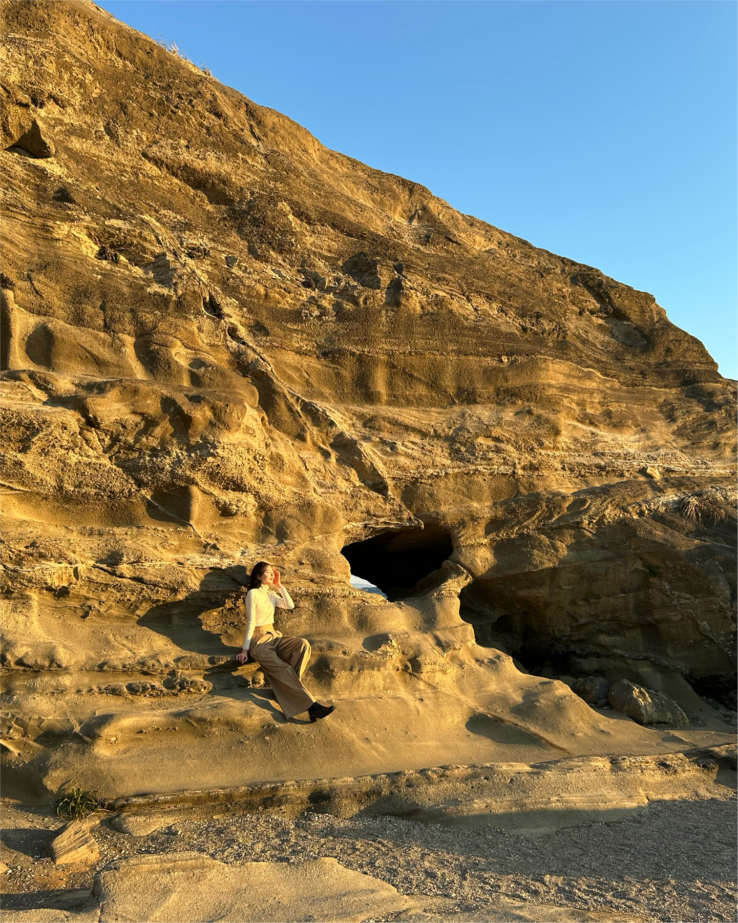 ここでは、馬の背洞門と隣する小さな洞穴をモチーフに撮影をした。雄大な景色をしっかり収めるには、引きで撮影するのがポイント。海辺は、強風で撮影が難しいことも多いが、引きで撮影すると雰囲気がでやすい。