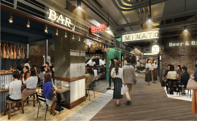 2026年3月に誕生したホテルやオフィス、飲食店からなる大型複合街区。オープン間もないながらにぎわうのは、34店ほどが連なる「スタジアム横バル街」。寿司や中華、イタリアン、インド料理など、国内外の食がたっぷりと堪能できる。お店をハシゴするのも楽しい。
