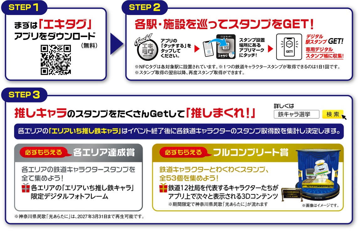 エキタグスタンプ取得で鉄道キャラクターに投票できるデジタル駅スタンプラリー『推しまくれ!神奈川県の鉄道キャラクターエキタグ選挙2026』を開催します。