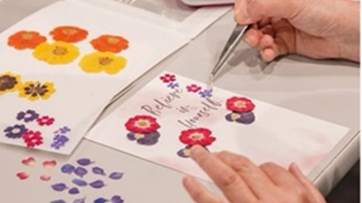 押し花とデザインを組み合わせる制作体験です。