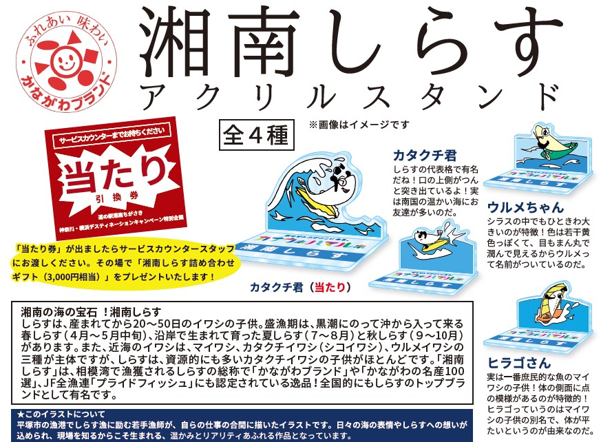 ※「湘南しらすキャラクター」は神奈川県しらす協議会の漁業者がデザインしました。