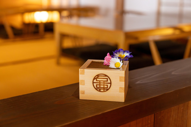 升ティラミス花盛り(抹茶/ほうじ茶)大山阿夫利神社「茶寮石尊」の名物メニューにエディブルフラワーを添えた特別仕様の「升ティラミス」です。 -