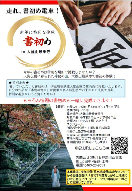 制作した書初めは、「伊豆箱根鉄道大雄山線」の車両内に掲載いたします!