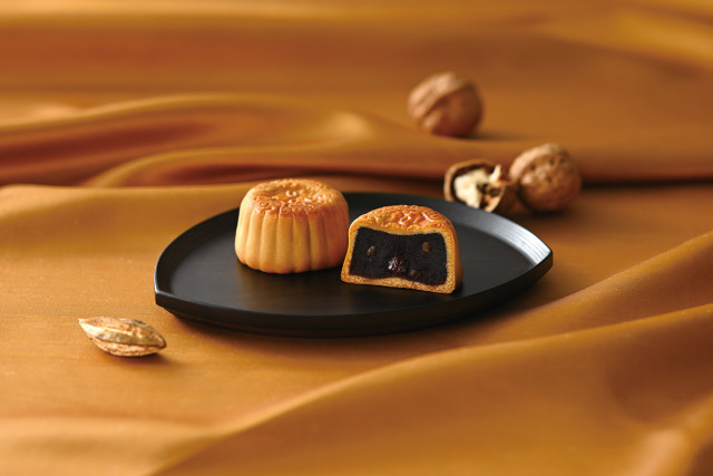 「横濱月餅 チョコ&チョコ ~くるみ入り~」は、チョコレートあんの中にアクセントとしてくるみをプラスした、甘さ控えめながらもコクのある風味が特長の月餅です。