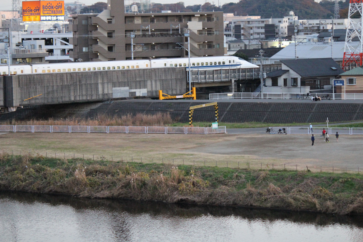 川沿いの遊歩道や土手からは、川辺に集まる水鳥などを観察できるのはもちろん、間近から電車を撮影することが出来ます。東横線だけではなく、徒歩10分ほど土手を歩くと東海道新幹線の橋げたもあり、迫力のある走行風景を撮影できます。天気の良い日には遠くに富士山も望めることができます。