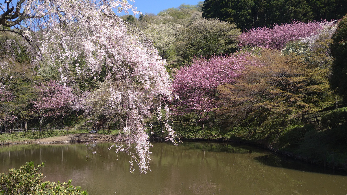 最明寺史跡公園は松田山の山頂付近に位置し、人里離れた静かな場所に広がる穏やかな公園。春には色とりどりの花が咲き誇り、散策路を歩けば野鳥のさえずりが耳に心地よく響きます。斜面を上ると富士山や相模湾も一望できます。隠れた桜の名所としても知られ、ソメイヨシノや大島桜、しだれ桜など多様な桜が次々と咲き乱れます。公園中央の池を囲む桜の木々も見応え十分。珍しい桜を探すのも楽しみのひとつです。また、毎年4月10日に開催される「最明寺例祭」では、地域の文化に触れることもできます。