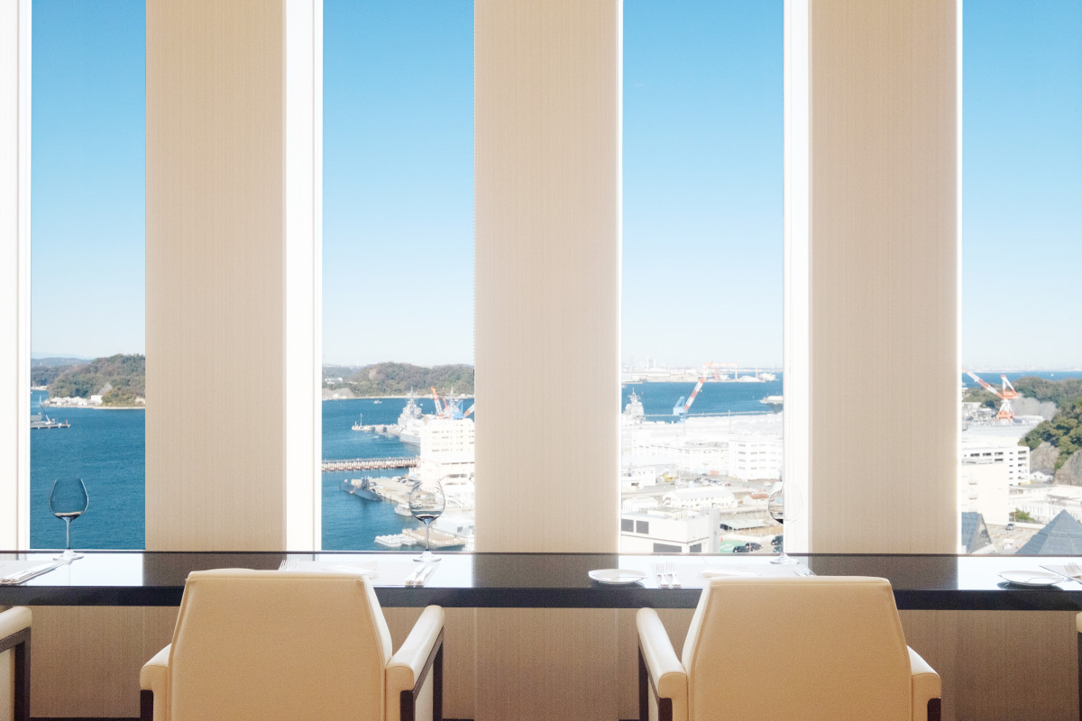 客室160室、レストラン、宴会・会議室を完備。19階から横須賀港を一望できる絶景レストラン「ビストロ・ブルゴーニュ」で、地元の食材を使ったフレンチを楽しめます。
