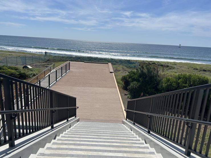 さらに、公園内には津波避難展望台を整備しており、普段は海を一望できる絶景スポットとして利用できます。隣接するビーチパークや平塚漁港をつなぐ海岸園路も開通し、海岸エリアを散策できます。海風を感じながらゆったり過ごせる「ひらつかシーテラス」で平塚ならではの海辺の魅力を満喫してみませんか。