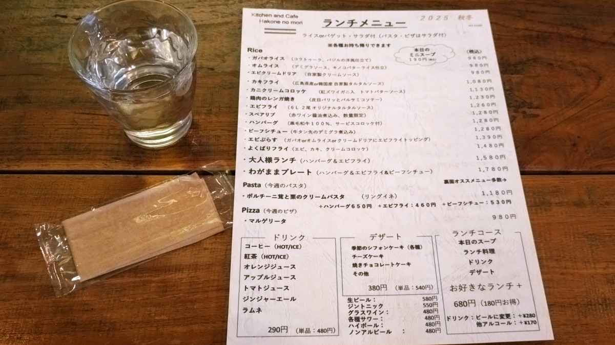 昼はカフェとして、夜はバーとして、それぞれ美味しい食事も楽しめる、Kitchen&Cafe はこねの森。