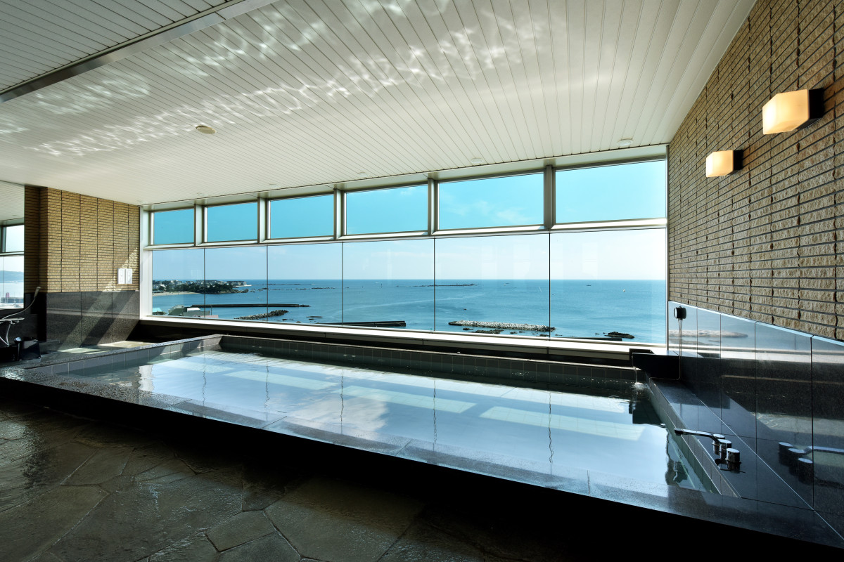 最上階にある大浴場「Horizon Onsen」は、その名の通り湯船と水平線が繋がるようなインフィニティ風呂。晴れた日には富士山や江の島を望む絶景とともに、天然鉱石を使用した人工温泉で心身を解きほぐす至福の時間をお過ごしください。
