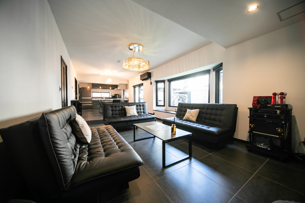 室内は、怪我のリスクや衛生面に配慮した愛犬に優しい床材を採用。最新のカラオケや3つの寝室に加え、アメニティやキッチン設備も充実しており、家族やグループで気兼ねなく楽しめます。