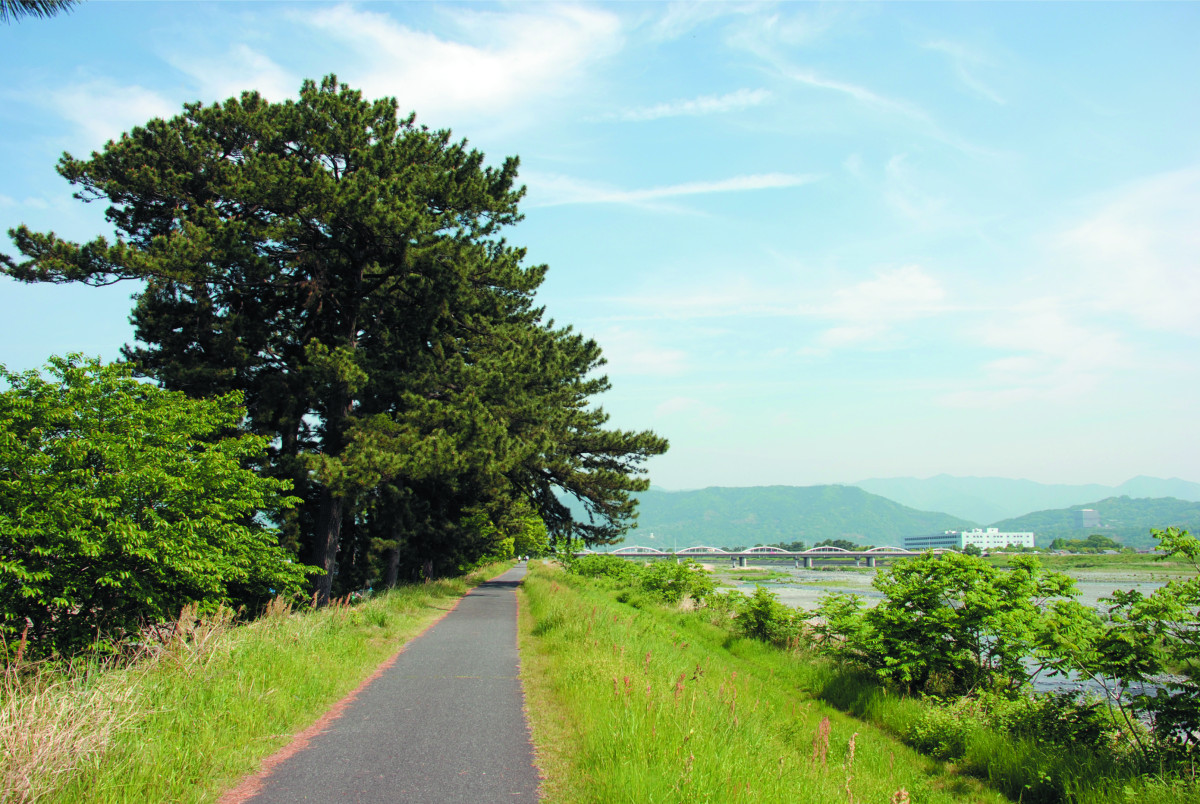 川の堤防上の河口まで植栽されている約400本のクロマツは、江戸時代の農政家・二宮尊徳が子守りの駄賃のお金で、松の苗を植えたものが始まりといわれています。大きく根を張るクロマツは、治水に役立ったといいます。